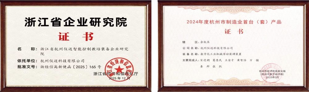 技术创新持续发力,研发布局不断拓展,核心竞争力稳步提升。2025年,仪迈科技深耕智能制造领域,成功落地工业4.0智能制造和工业互联网产品十余款,完成机电一体化升级及推新。全面升级产品结构及工艺,以技术创新为核心,构建多品类、高适配的智能装备体系,夯实智能制造核心竞争力。2025年荣获发明专利6项,实用新型专利20余项,获得杭州市制造业首台(套)产品和浙江省企业研究院证书,彰显了企业在教培领域的研发硬实力与行业影响力。